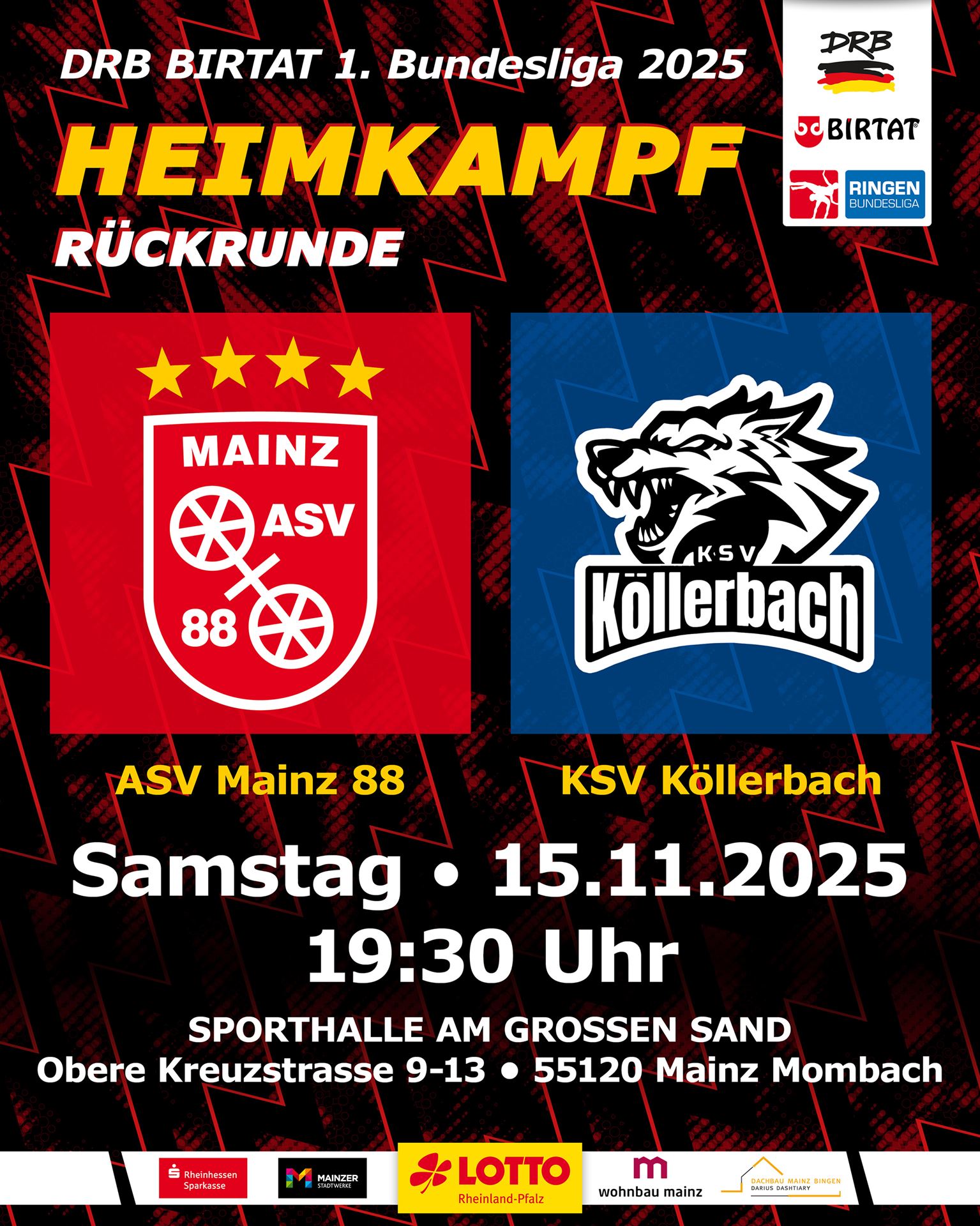 Am 15. November 2025 kommt es in der Mombacher Kampfarena zum großen Showdown: Der ASV Mainz 88 empfängt den KSV Köllerbach. Ein Duell, das seit Jahren Tradition, Rivalität und Spannung verspricht. Beide Mannschaften trennen in der Tabelle nur ein Punkt, beide kämpfen um die begehrten Playoff-Plätze in der stärksten Bundesliga-Saison aller Zeiten.