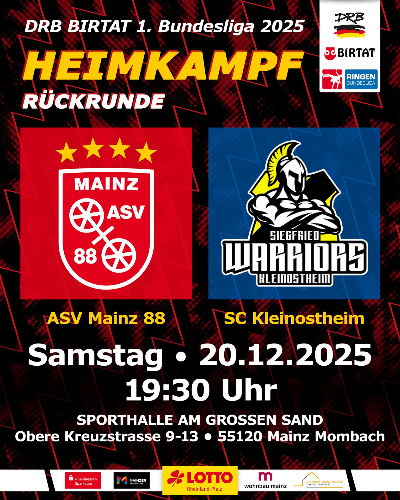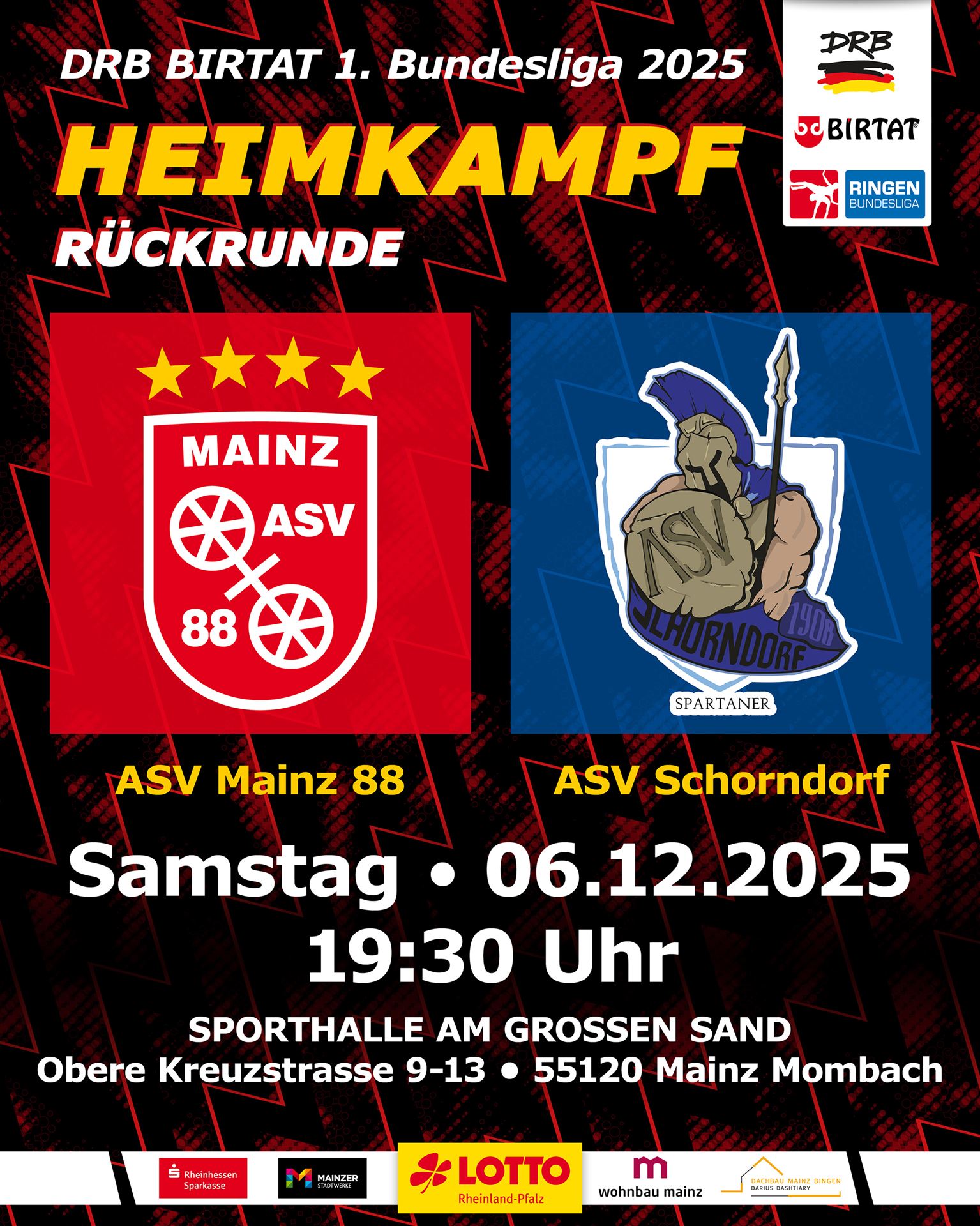 Am 27. September 2025 beginnt für den ASV Mainz 88 die neue Saison in der eingleisigen Ringer-Bundesliga und gleich zum Auftakt wartet der schwerstmögliche Gegner. Mit dem SV Wacker Burghausen kommt der „FC Bayern des Ringsports“ nach Mainz. In den vergangenen Jahren war Wacker dem ASV fast immer überlegen, fünf Meistertitel in den letzten sieben Jahren sprechen eine deutliche Sprache. Lediglich Mainz im Jahr 2022 und Schorndorf in der vergangenen Saison konnten diese Dominanz kurz unterbrechen. Auch diesmal gehen die Bayern als Favorit auf die Matte. Auch wenn sie sich nach außen als Underdog verkaufen, bleiben sie der Meisterschaftsanwärter Nummer eins. >>>mehr